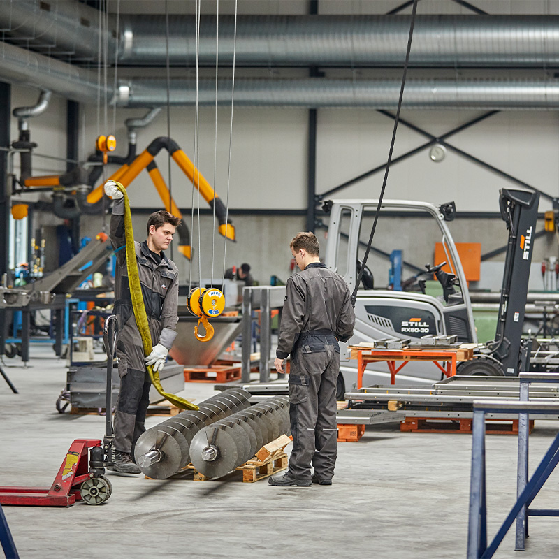 Vervolgens beschikken wij over een modern machinepark voor het in eigen beheer fabriceren van schroefbladen en transportschroeven, hierin zijn we gespecialiseerd.